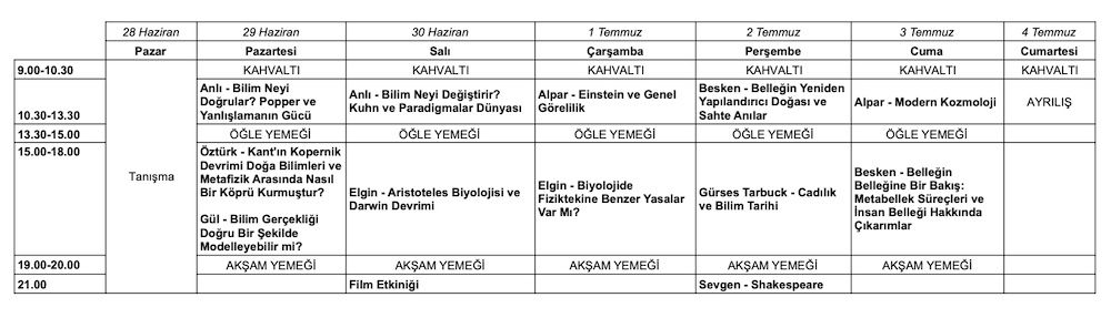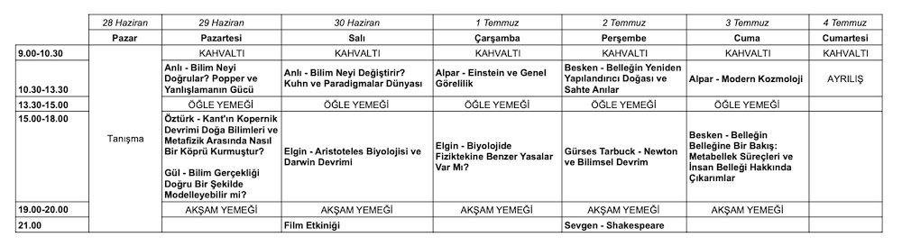 Günümüzde bilim insanlarının çalışma pratiklerinden bilimsel teorilerin sarsıcı değişim süreçlerine kadar, modern dünyanın en temel dayanağı olan "bilimsel faaliyetin" kendisini masaya yatırıyoruz. Şirince’nin zeytin ağaçlarının gölgesi ve serinliği altında 7 gün sürecek bu yoğun kamp programında, fizikten psikolojiye, bilim felsefesinden bilim tarihine kadar, disiplinlerarası bir perspektifle bilimi sadece bir "sonuç" değil, çok katmanlı bir "süreç" olarak yeniden sorguluyoruz.