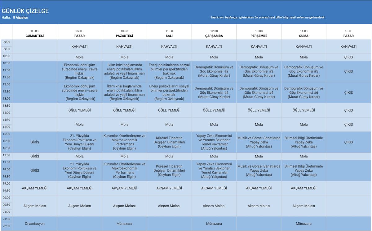 Tematik İktisat kampı, dönüşüm sürecindeki bu dünyada ekonomiyi, çağdaş dönemin belirleyici bazı alanları üzerinden incelemeyi amaçlar. Program, iktisadi değişimi tek bir eksene indirgemeden, farklı boyutlarıyla birlikte ele alarak, katılımcılara günümüz dünyasını bütünlüklü bir perspektiften değerlendirme imkânı sunmayı hedefler.